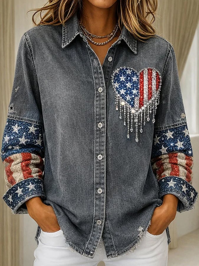 Women'S Casual American 250th Anniversary Commemorative Printed Shirt